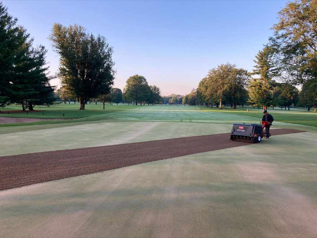 Zipline isn’t the only successful addition to his program. He’s also using TurfRx Ca to try to compensate for collar stress and other side effects of a stringent rolling program. He explained why it’s been so helpful: “We’re on the roller here 4-5 days a week. It’s stressful in that area. We try to time it with aerification to get it down in the soil. We go out a day before with it, irrigate and then hit them with ¼-inch solid tines. We were definitely healthier last year and we’re expecting to see even more benefits after using it for a few more.”